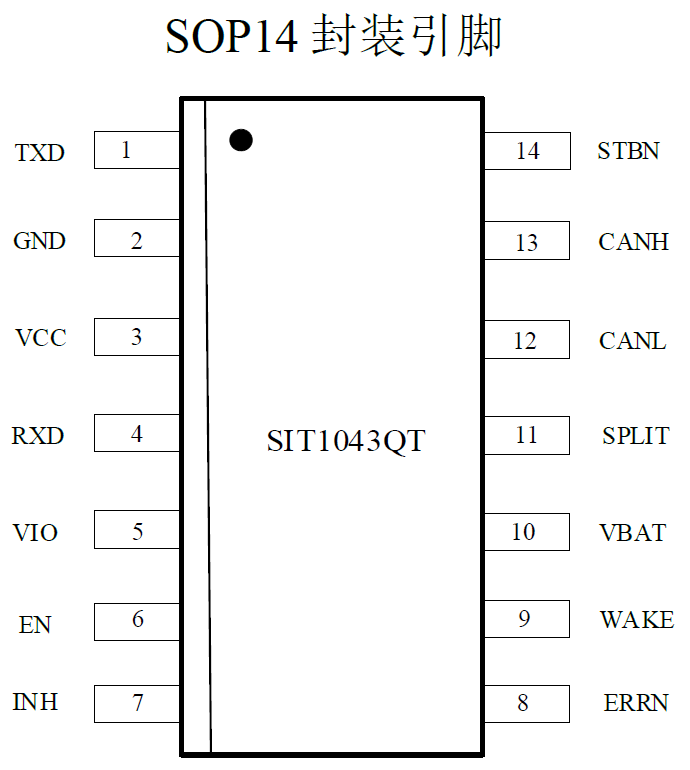 远程唤醒:唤醒源来源于自身ECU节点所在的网络报文,该节点可以处于完全睡眠状态,一般无能量消耗。这种唤醒的特点:只有当CAN收发器监控到总线电平变化或者特定报文时,就会接通CAN芯片INH引脚控制LDO给到主控芯片上电,从而唤醒ECU节点。芯力特公司的SIT1043Q CAN收发器兼容以上两种唤醒功能,下面我们来对SIT1043Q做个简单的介绍。