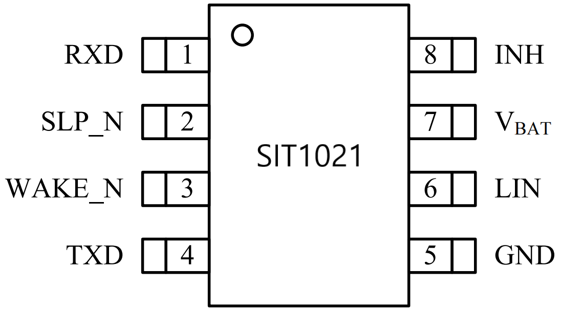 目前LIN收发器SIT1021的同类产品主要有NXP(TJA1021),SIT1021可以PIN TO PIN兼容。引脚分布图分别如下: