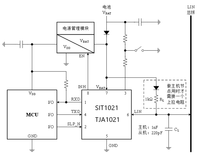 同时SIT1021有通过与LIN协议的一致性测试(Conformance Test),由以上可知,两款LIN收发器可以PIN TO PIN兼容,在LIN网络中可以兼容可靠通讯。