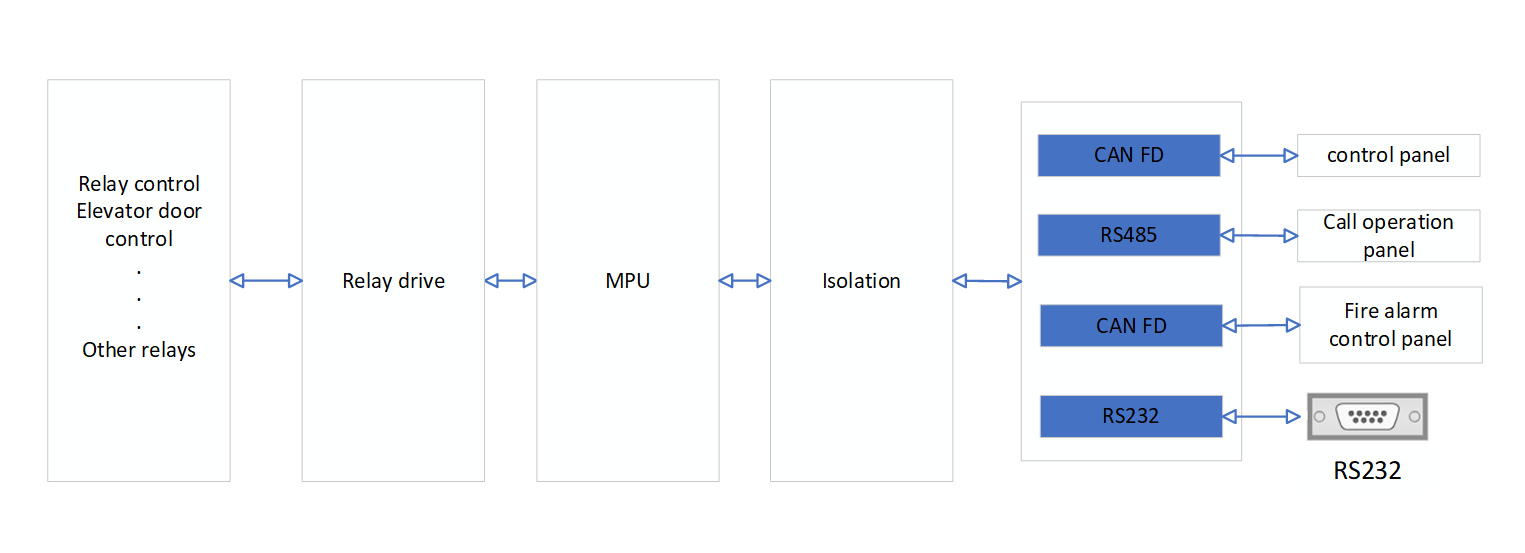 The user operation control panel signal is transmitted to the MPU through the CAN/RS485 bus to realize the selection of the floor and the opening and closing of the elevator door。